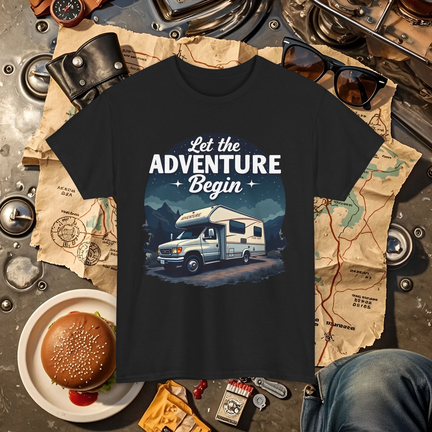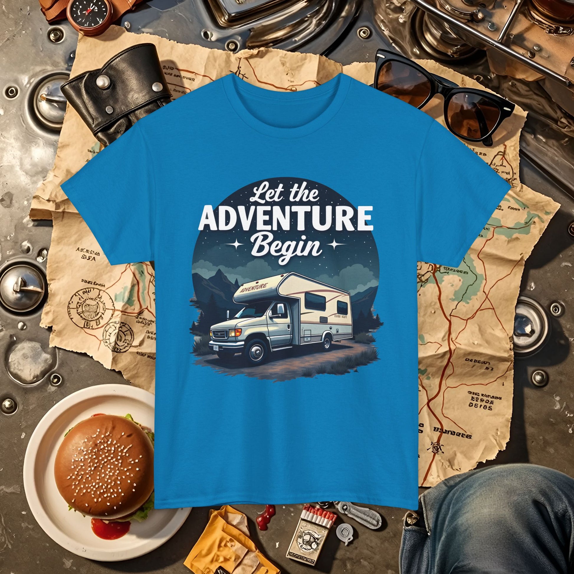 Adventure Awaits Road Trip & Vehicle Travel T-Shirts | Car, RV, and Motorcycle Adventure Tees
