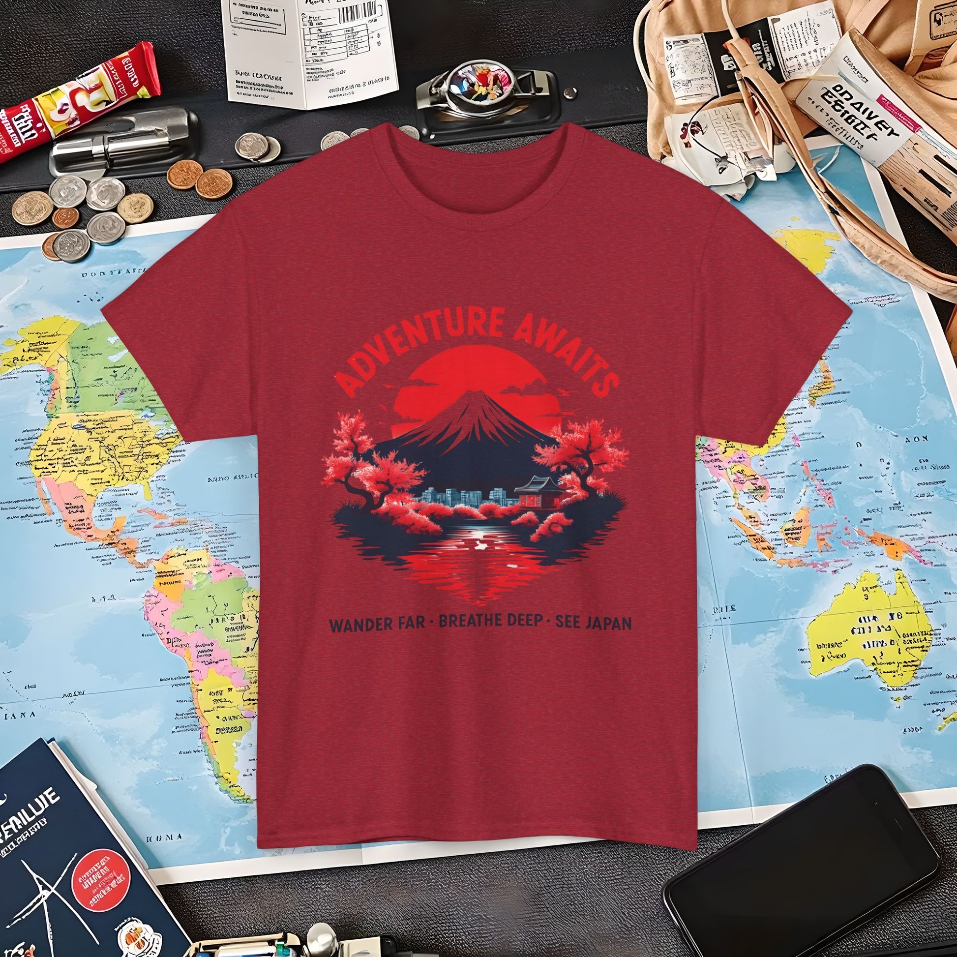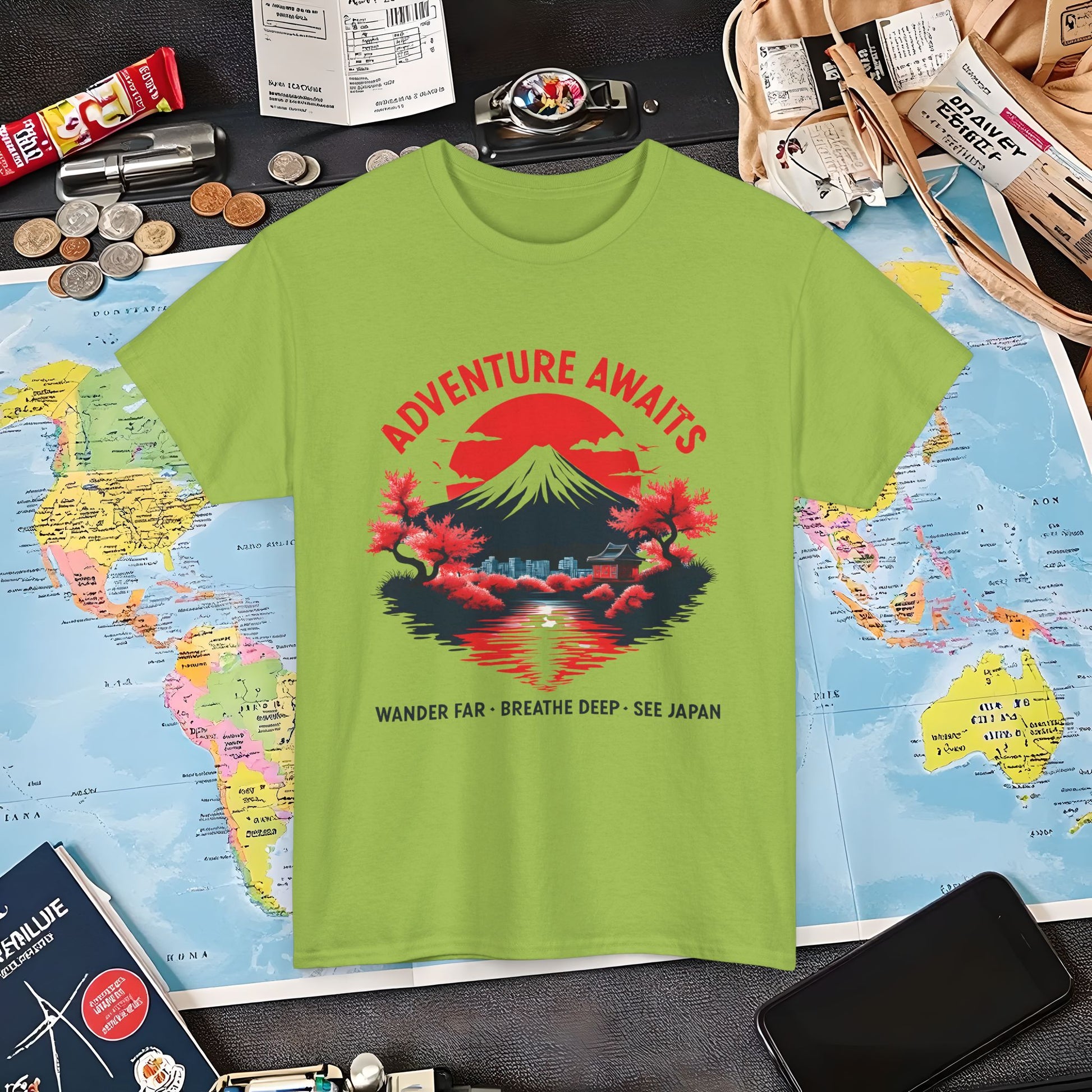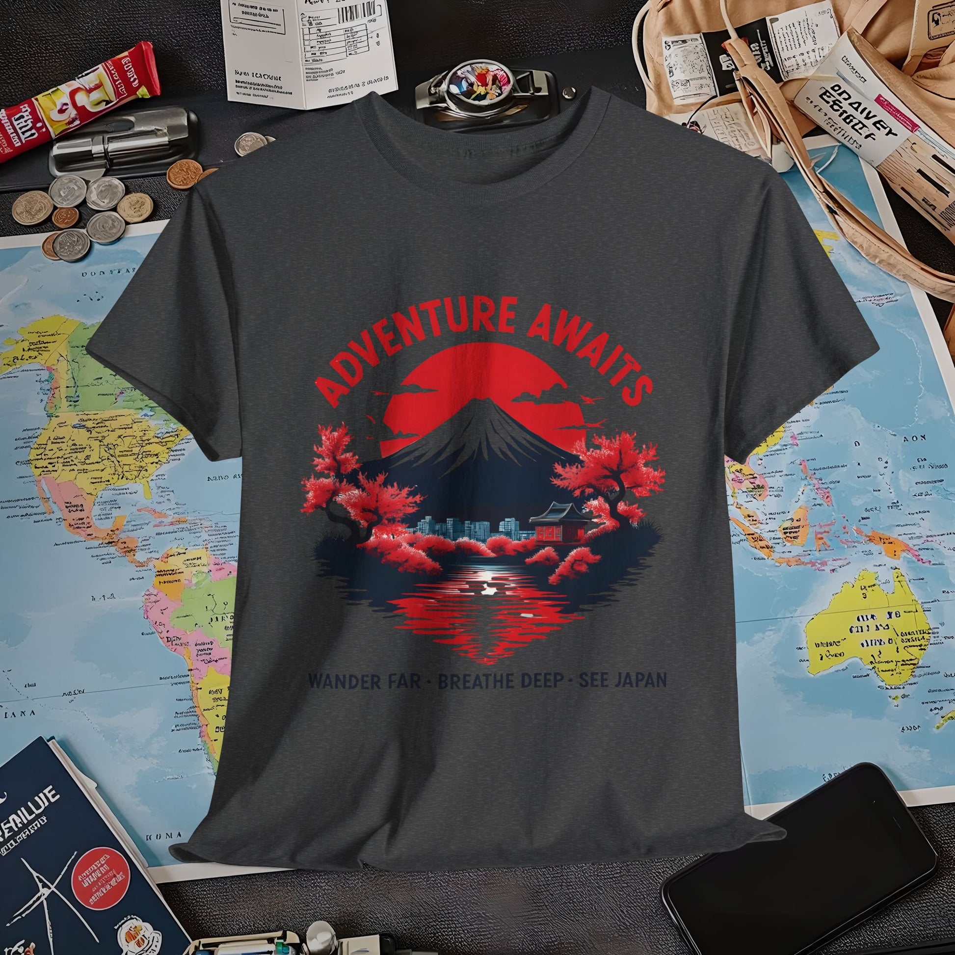 Adventure Awaits – Wander Far, Breathe Deep, See Japan T-Shirt – Scenic Mountain Escape Design Air Travel T-Shirts | Jetsetter, Airport, and International Flight Tees