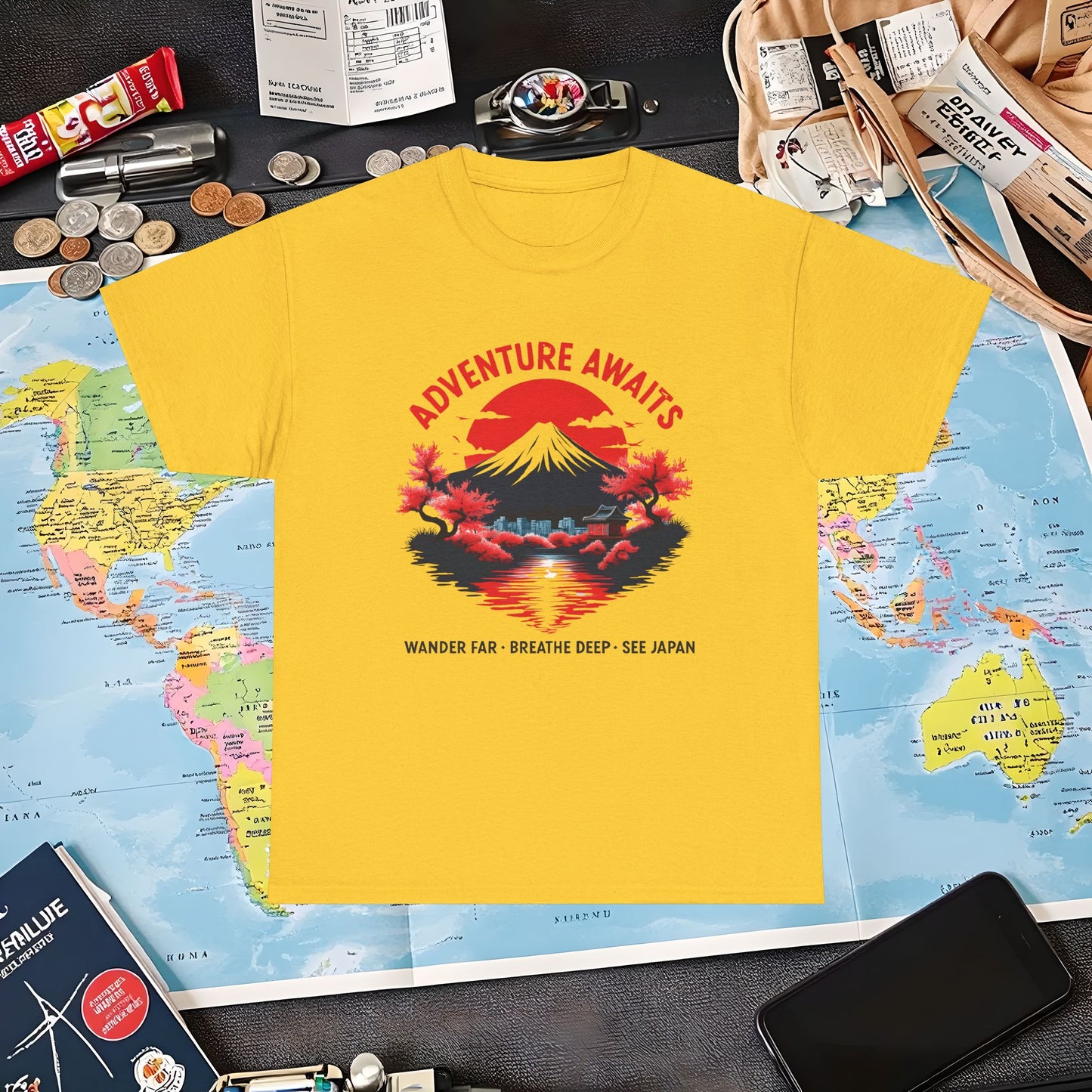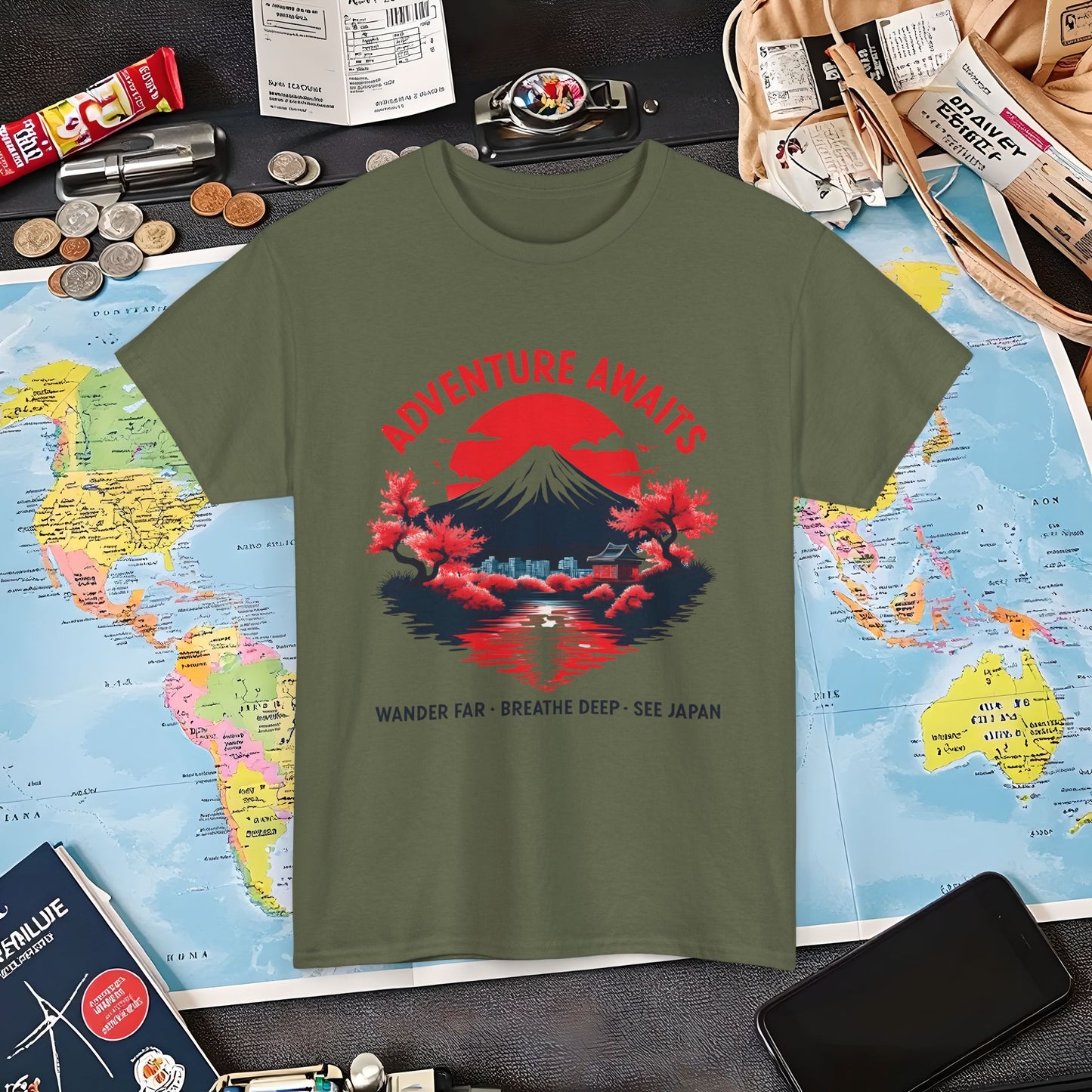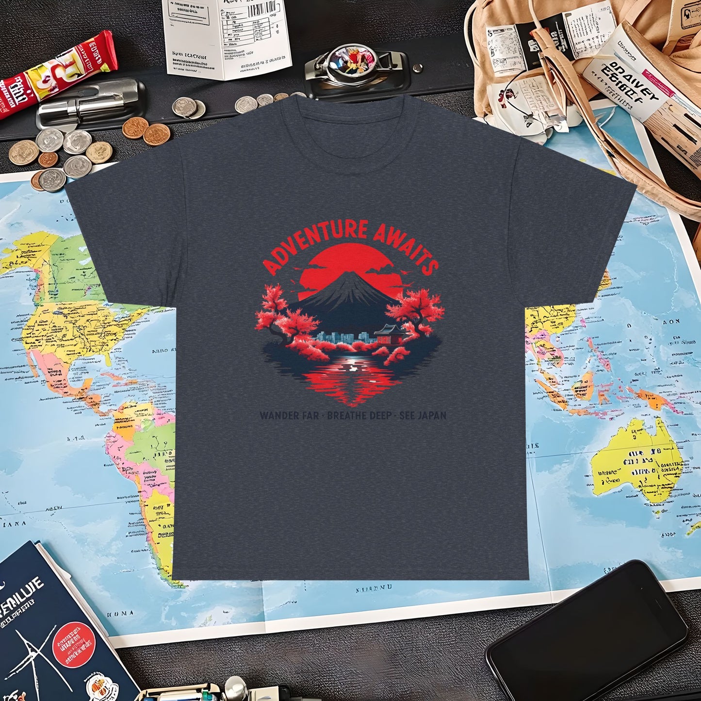 Adventure Awaits – Wander Far, Breathe Deep, See Japan T-Shirt – Scenic Mountain Escape Design Air Travel T-Shirts | Jetsetter, Airport, and International Flight Tees