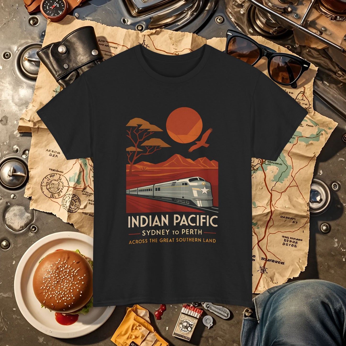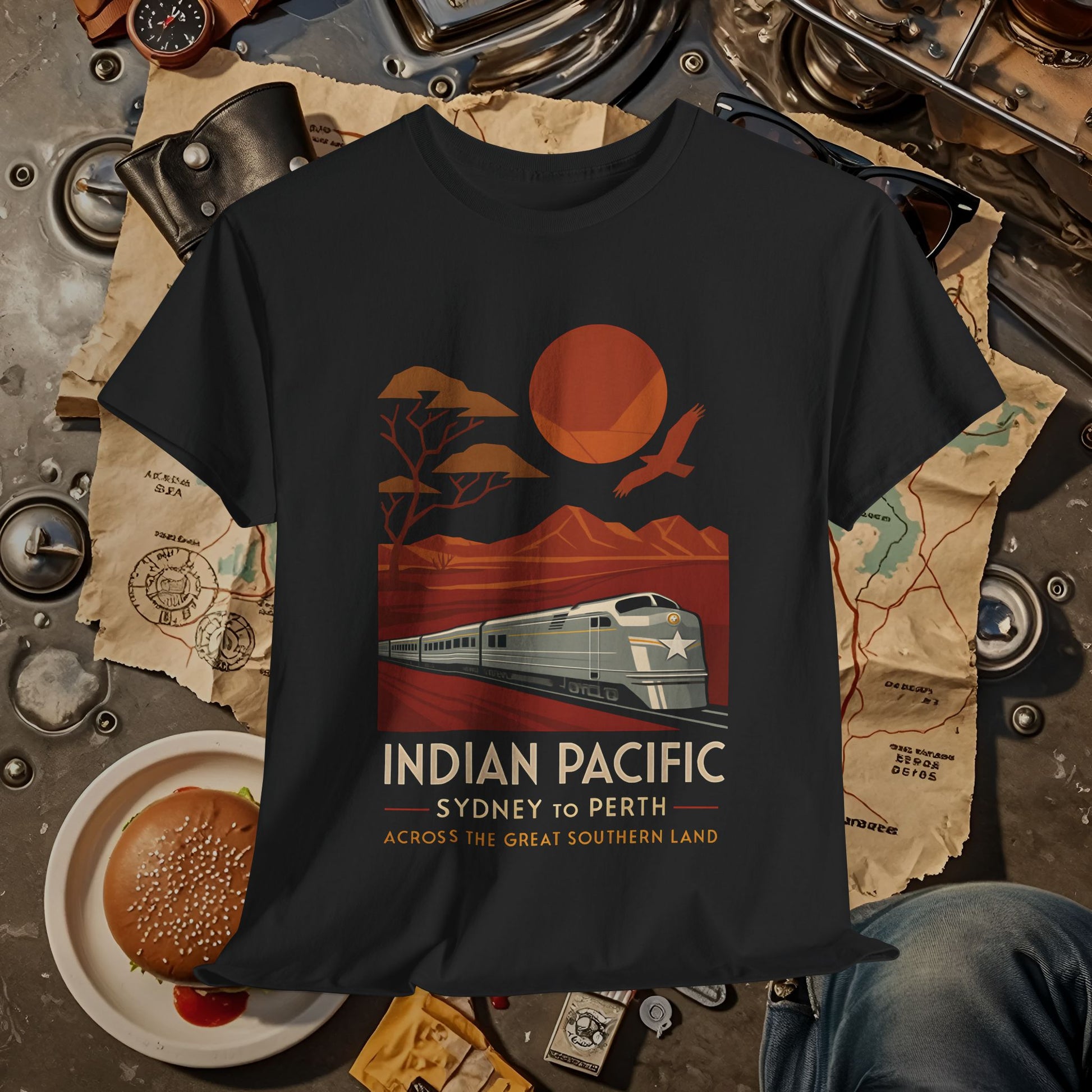 Australian Indian Pacific – Art Deco Desert Crossing Train Tee Road Trip & Vehicle Travel T-Shirts | Car, RV, and Motorcycle Adventure Tees