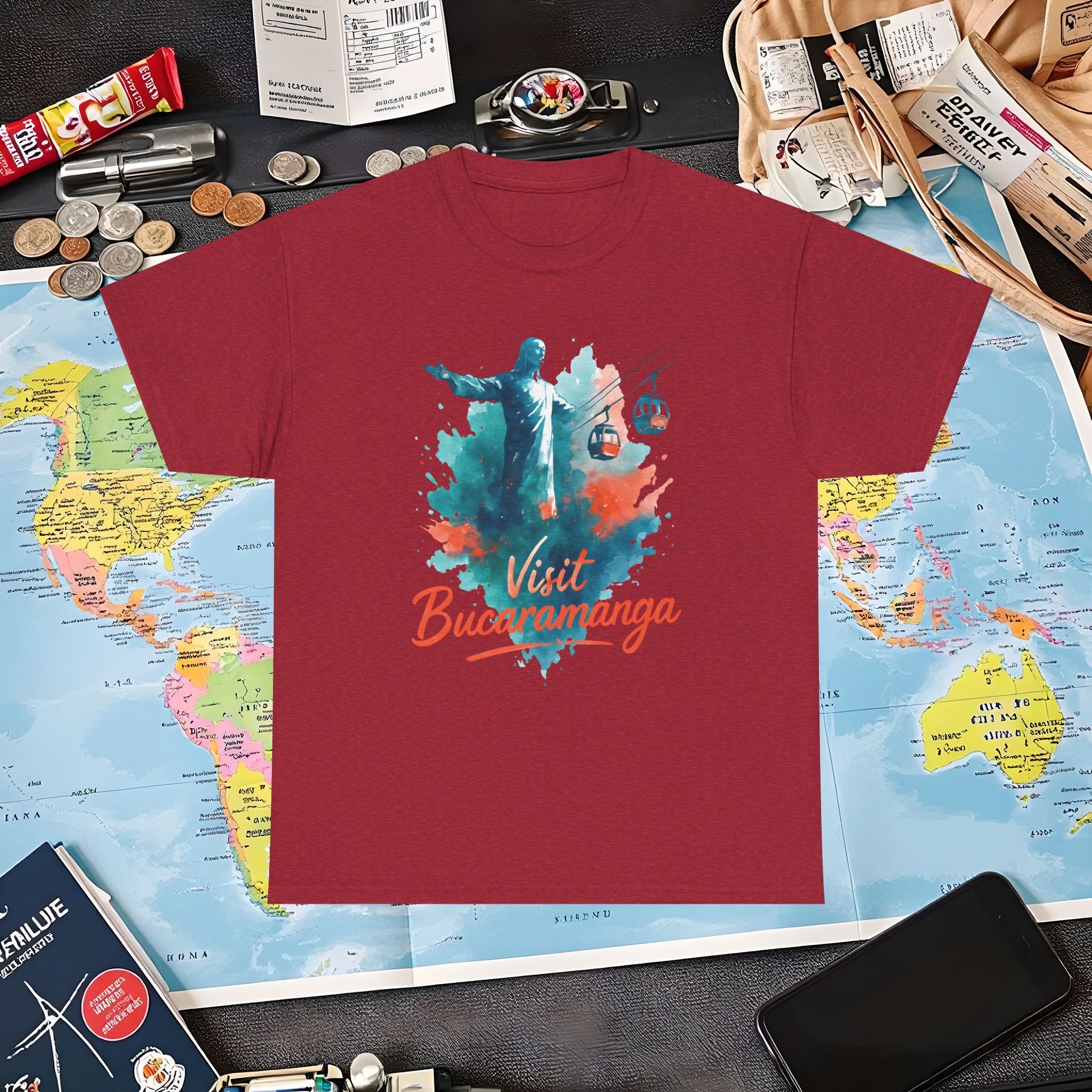 Cerro del Santísimo & Cable Car – Vibrant Watercolor Colombia Travel Tee | Layover Club Air Travel T-Shirts | Jetsetter, Airport, and International Flight Tees