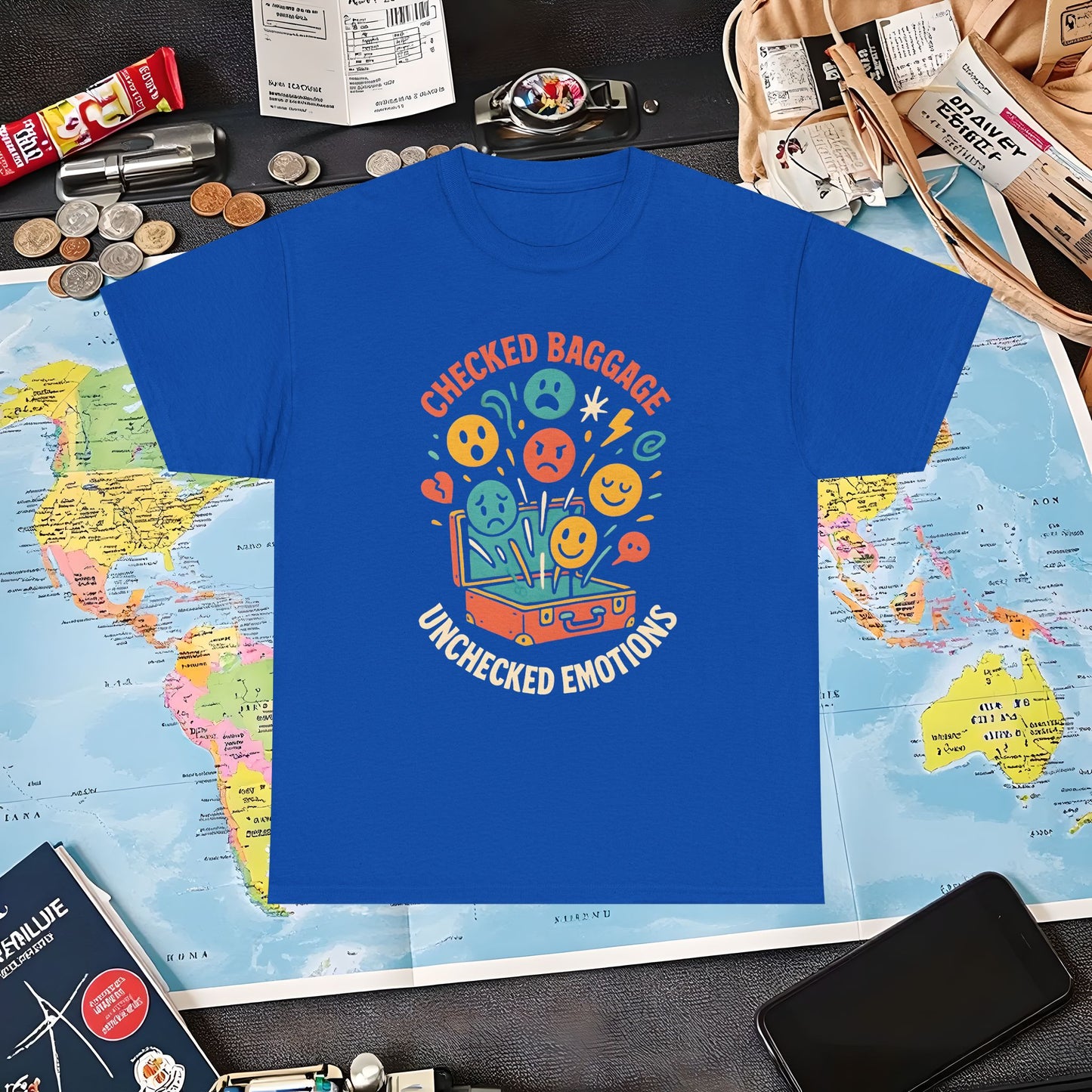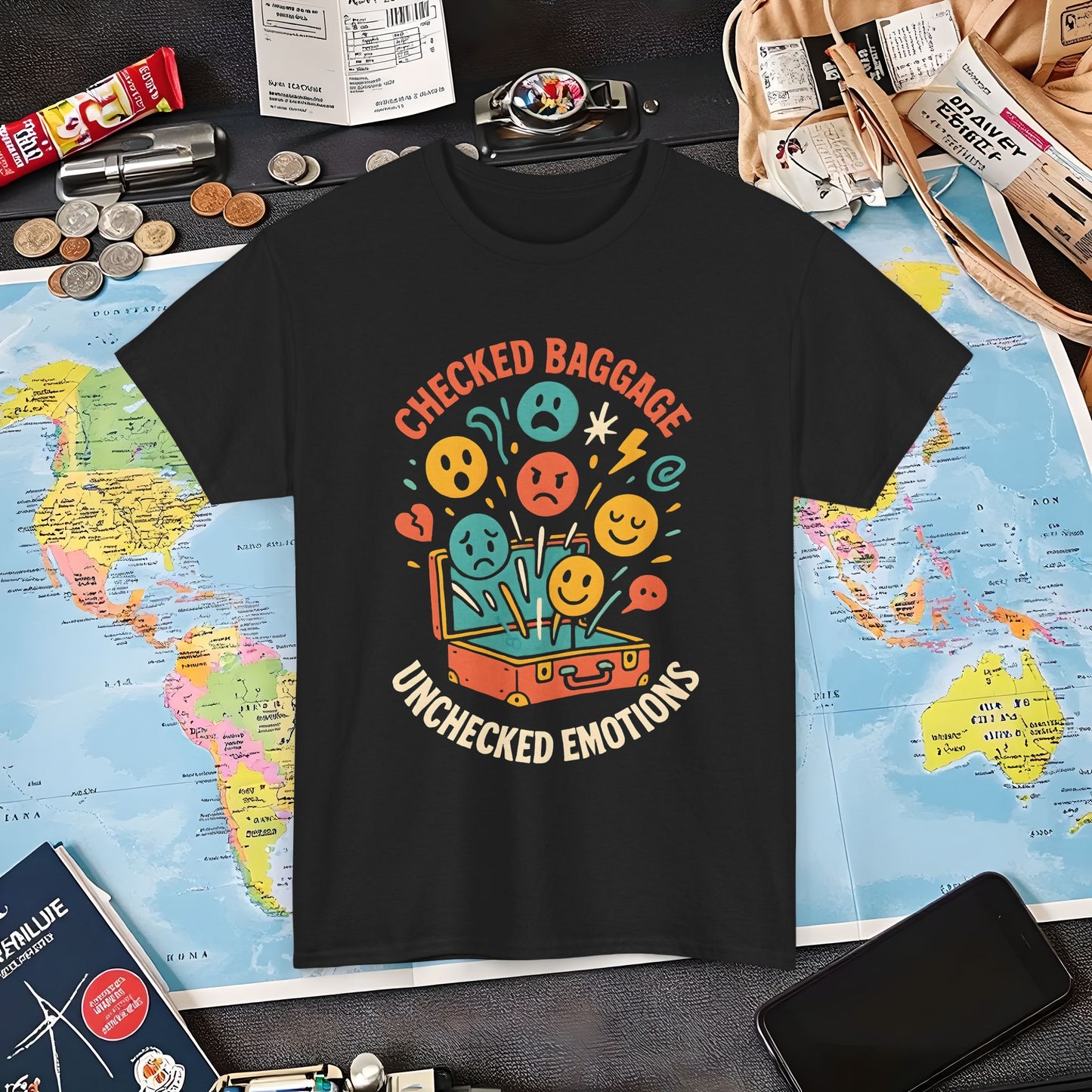 Checked Baggage Unchecked Emotions T-Shirt – Vintage Emoticons Luggage Travel Tee for Emotional Travelers Air Travel T-Shirts | Jetsetter, Airport, and International Flight Tees