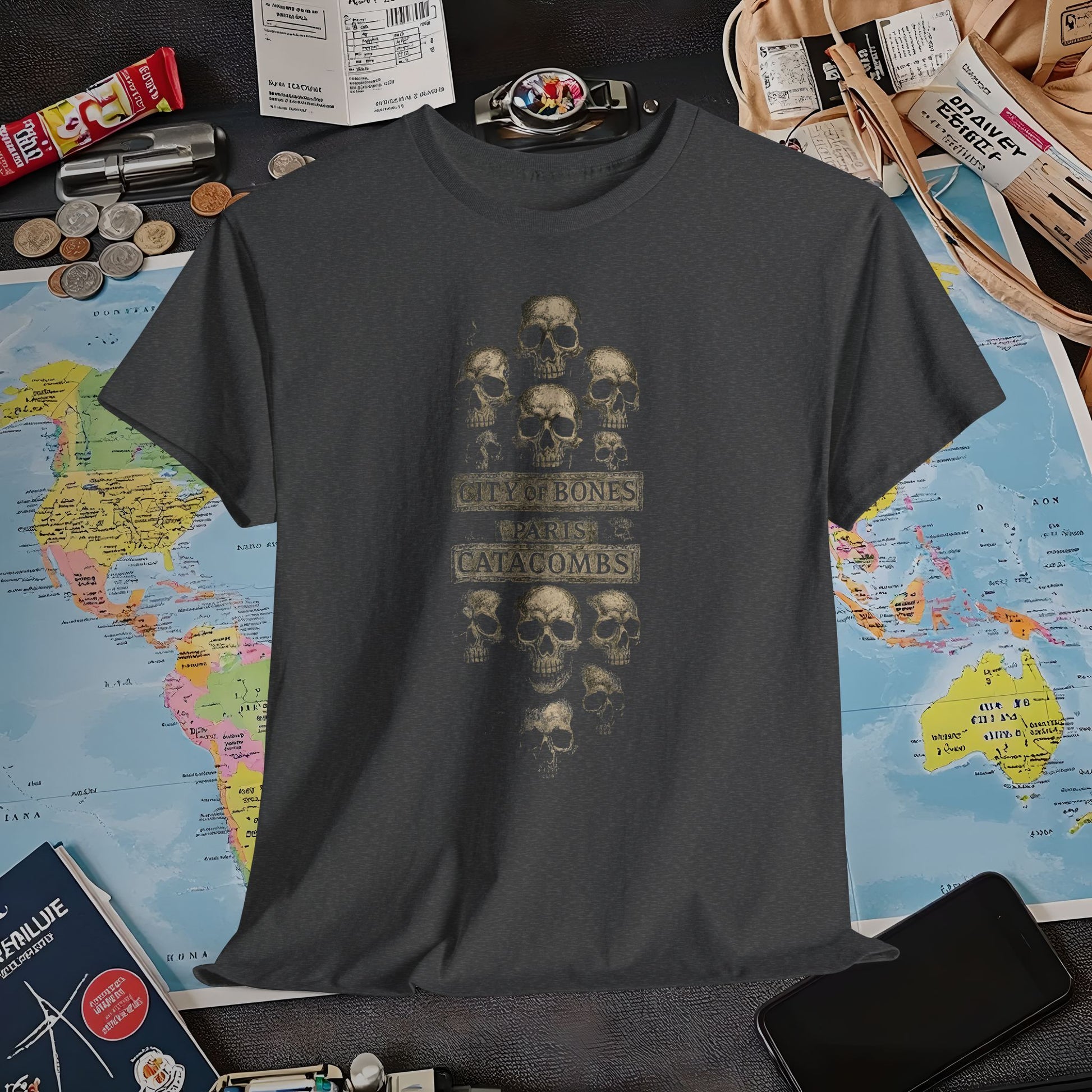 City of Bones Paris Catacombs Skull Wall Shirt – Gothic Haunted Travel Tee | Layover Club Air Travel T-Shirts | Jetsetter, Airport, and International Flight Tees