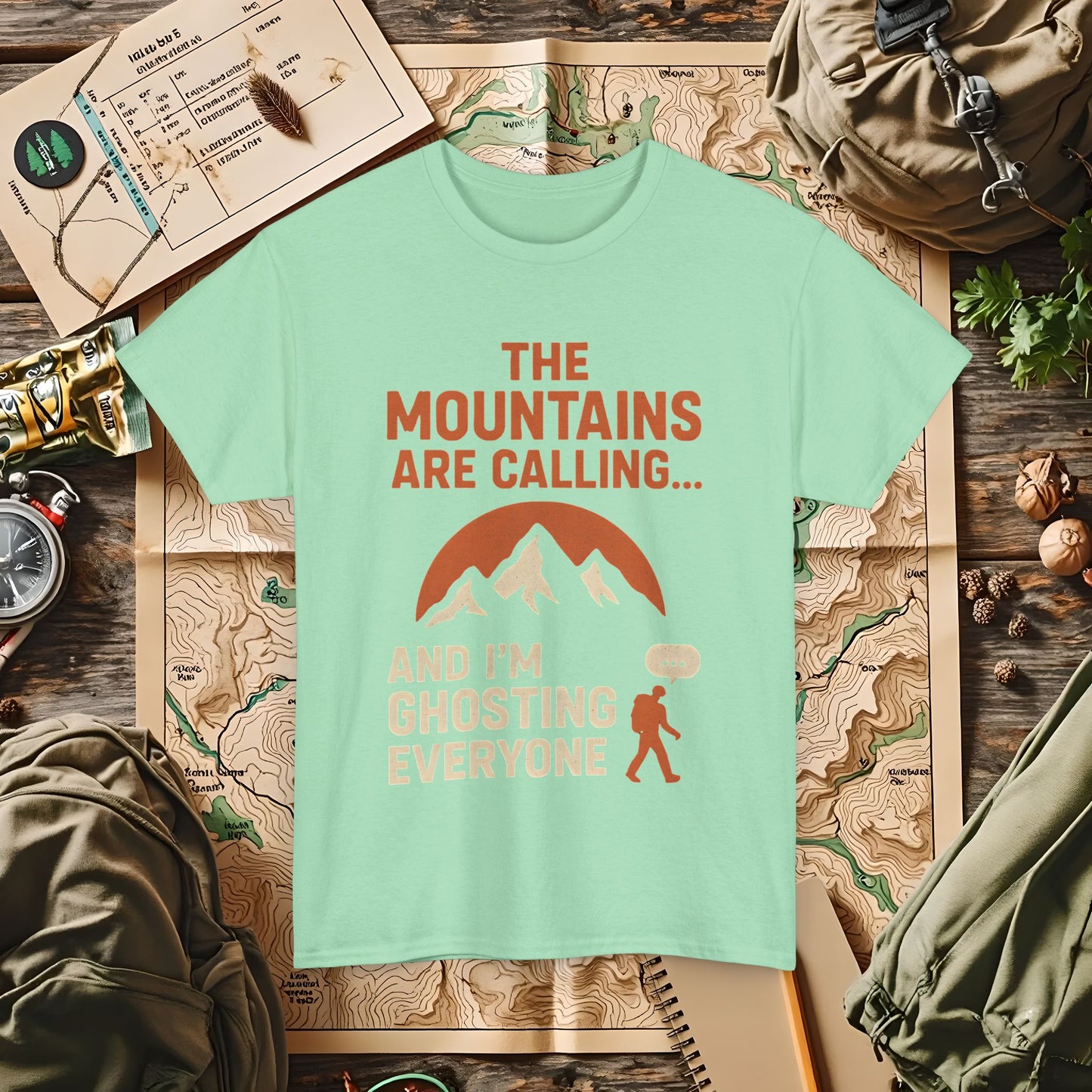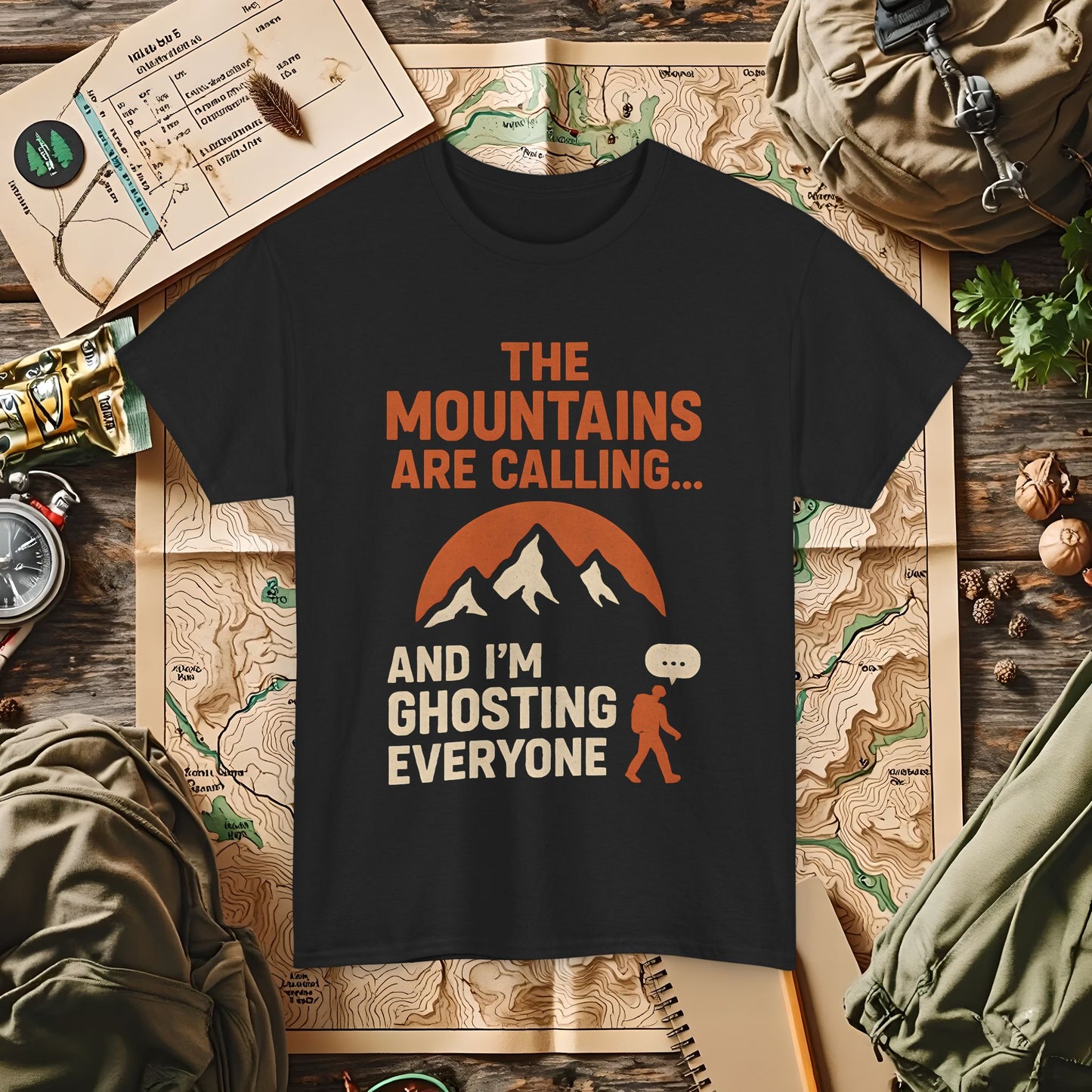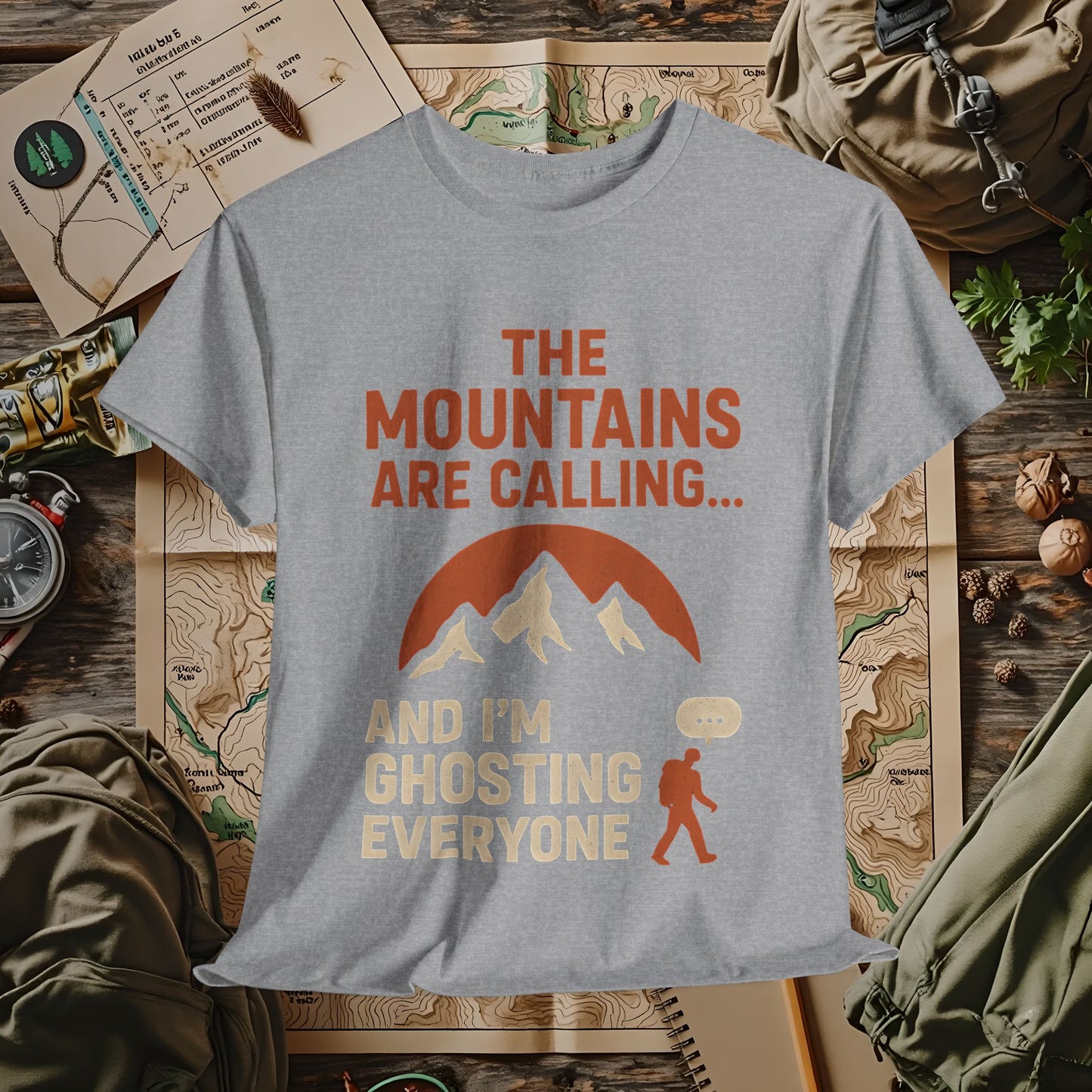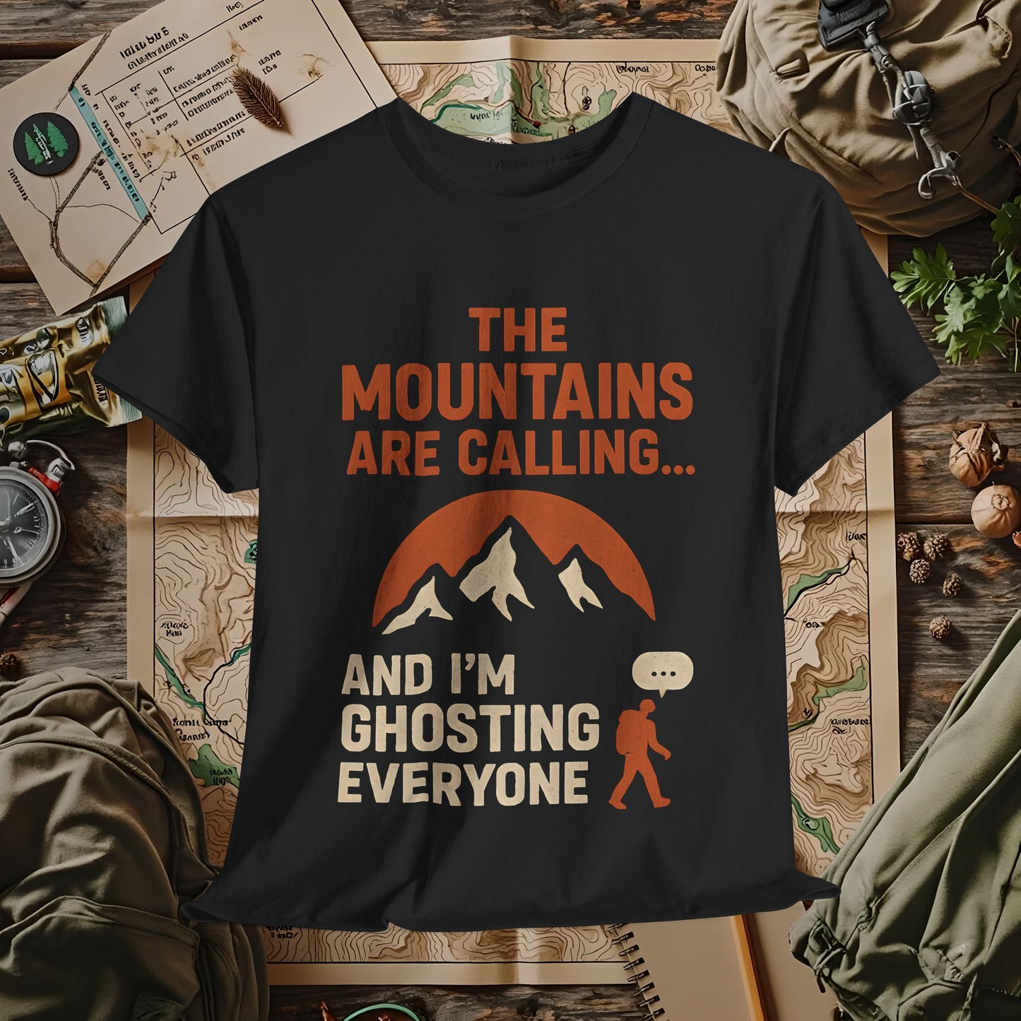 The Mountains Are Calling and I'm Ghosting Everyone – Ghosting for the Mountains Tee | Camping, Hiking, Rafting & Kayaking Tees for Nature Lovers