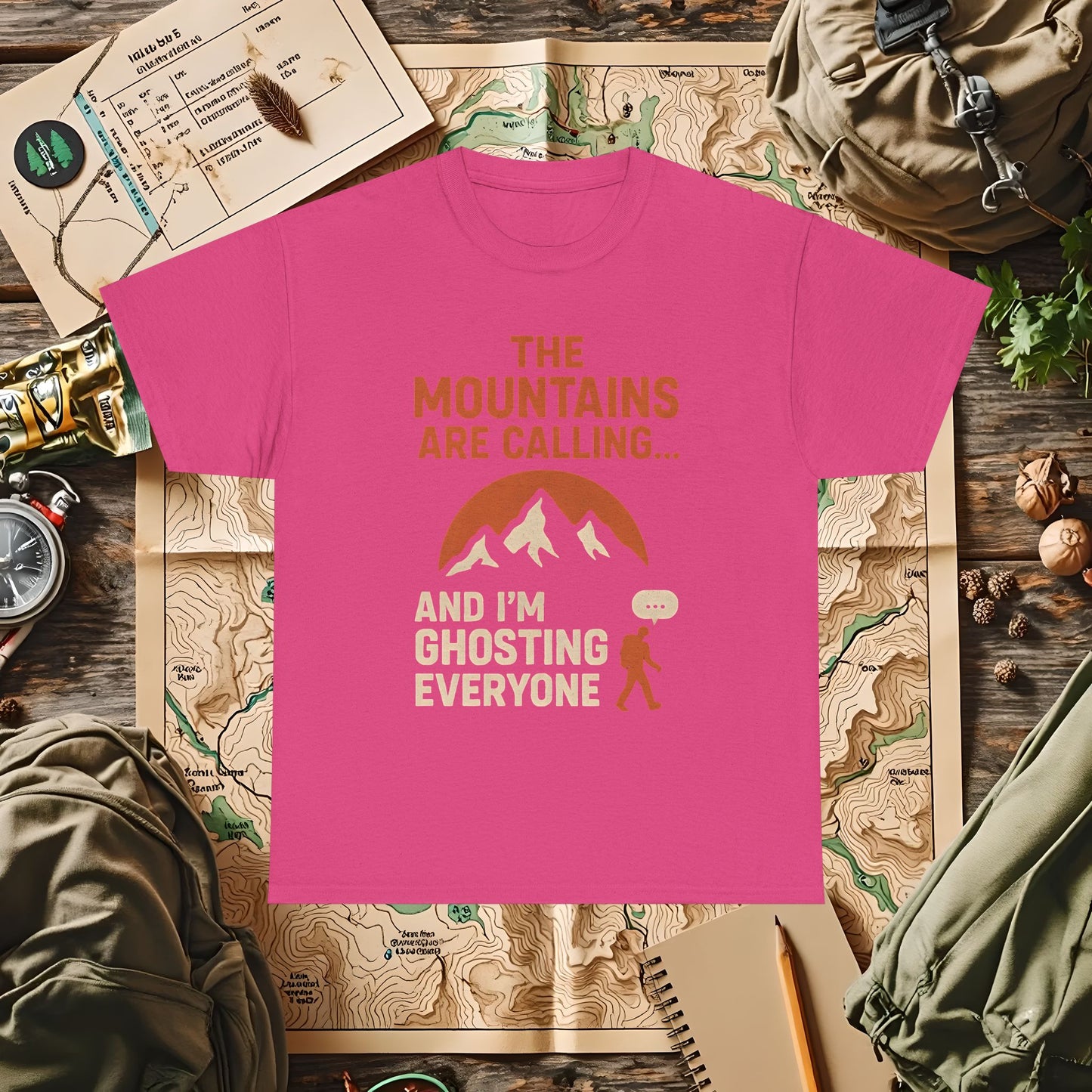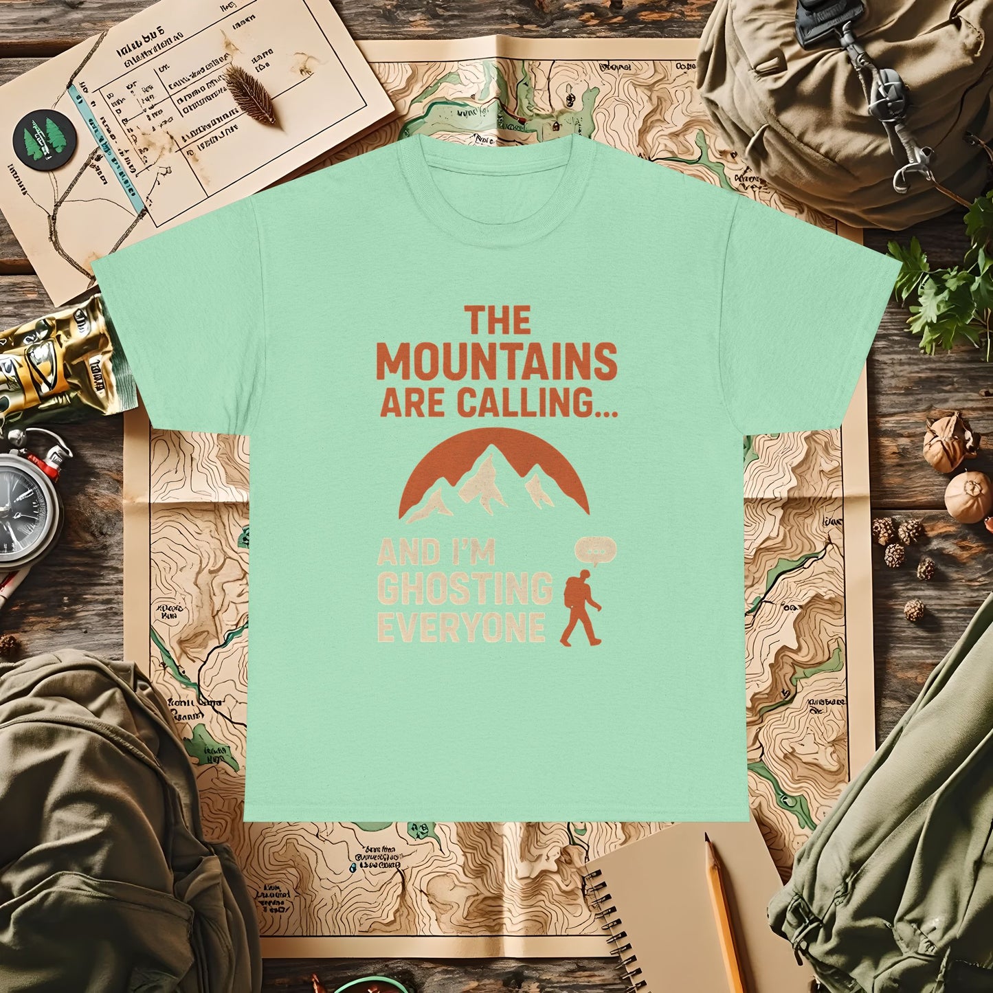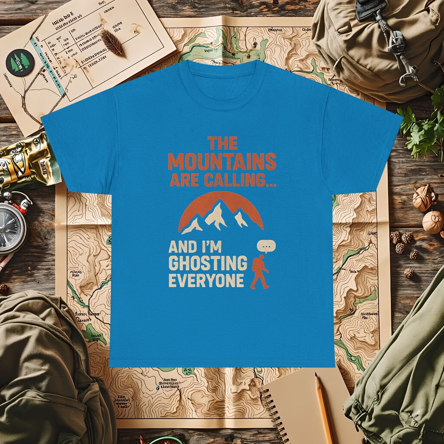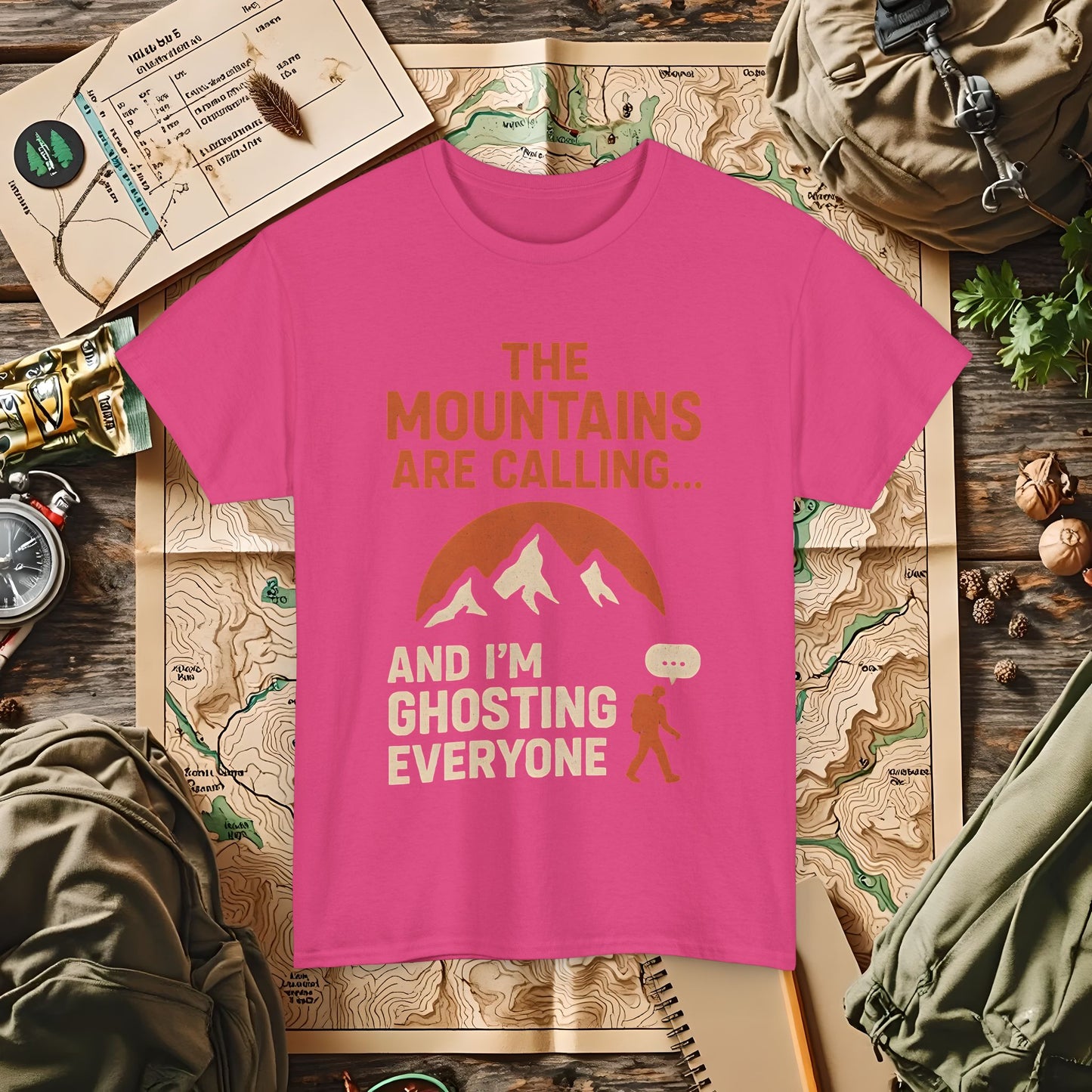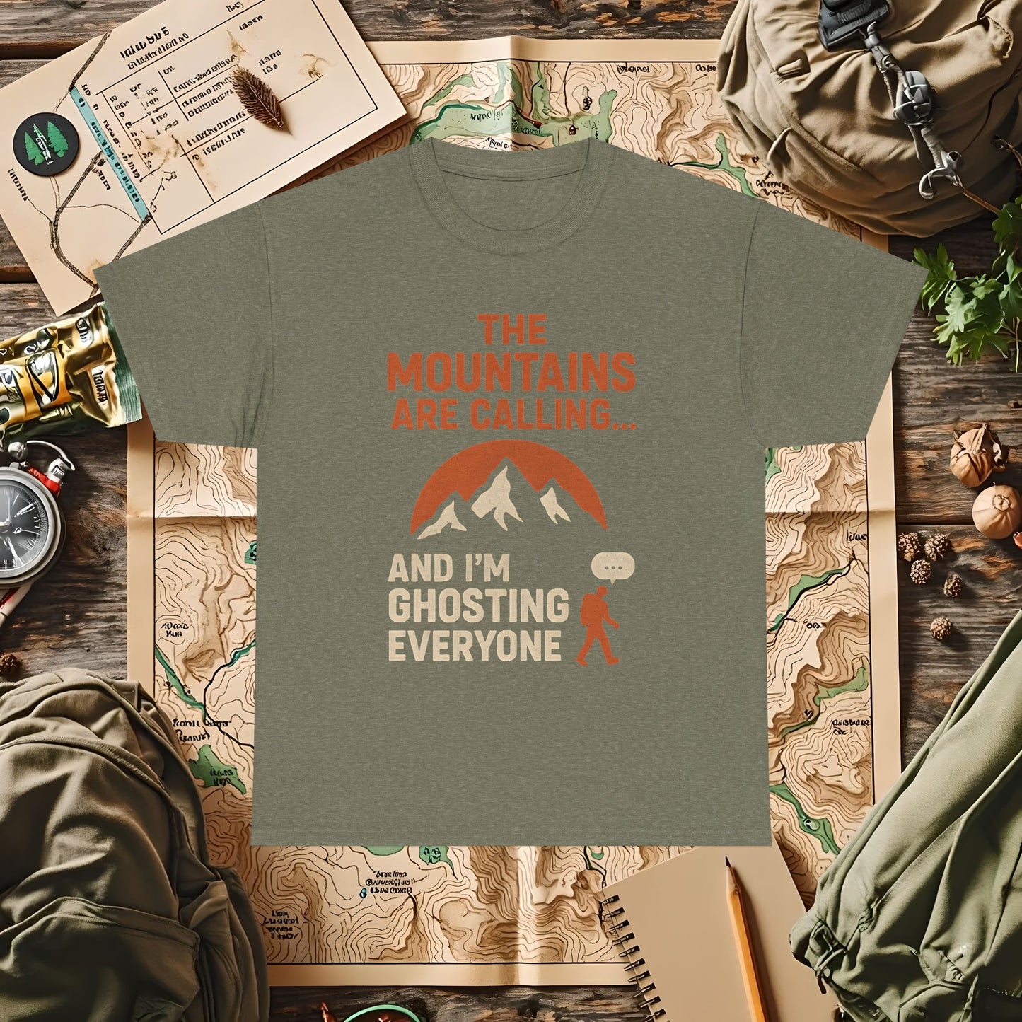 The Mountains Are Calling and I'm Ghosting Everyone – Ghosting for the Mountains Tee | Camping, Hiking, Rafting & Kayaking Tees for Nature Lovers