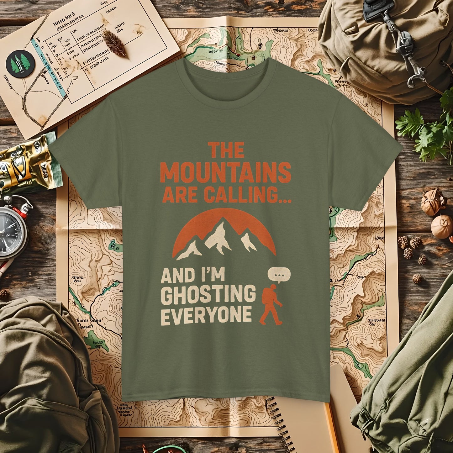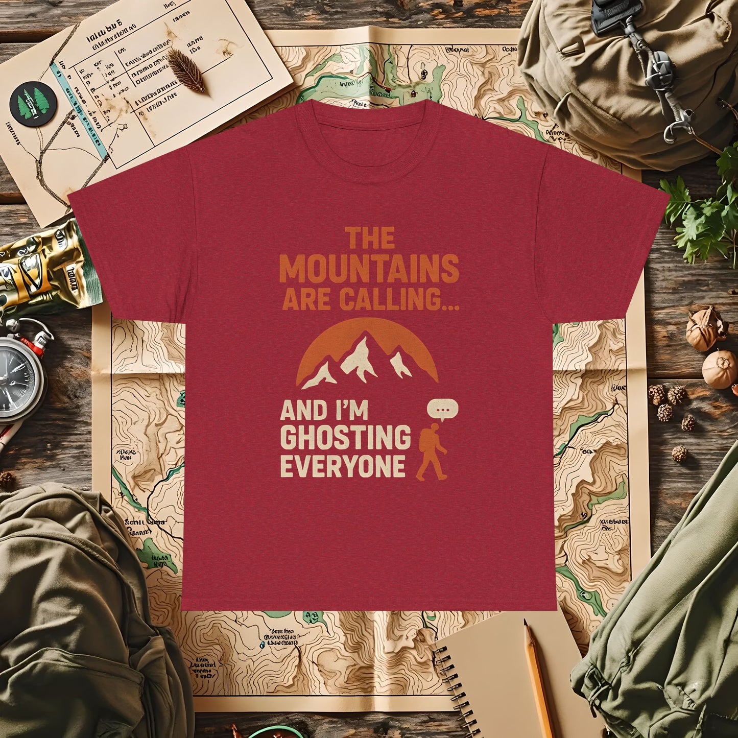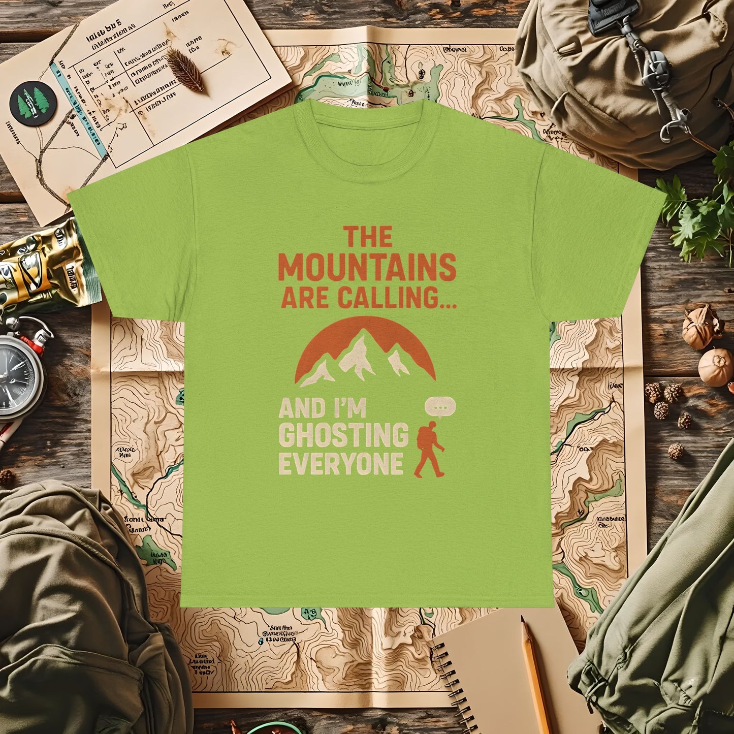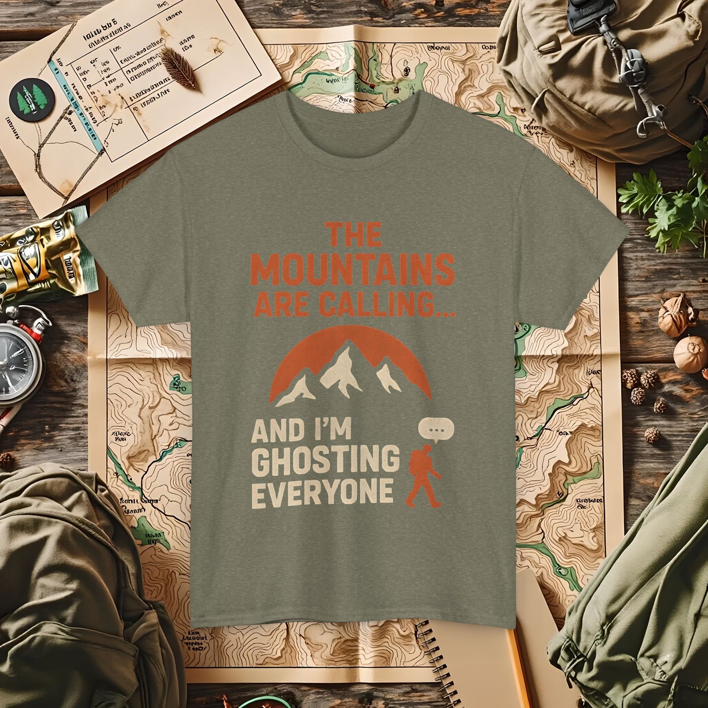 The Mountains Are Calling and I'm Ghosting Everyone – Ghosting for the Mountains Tee | Camping, Hiking, Rafting & Kayaking Tees for Nature Lovers