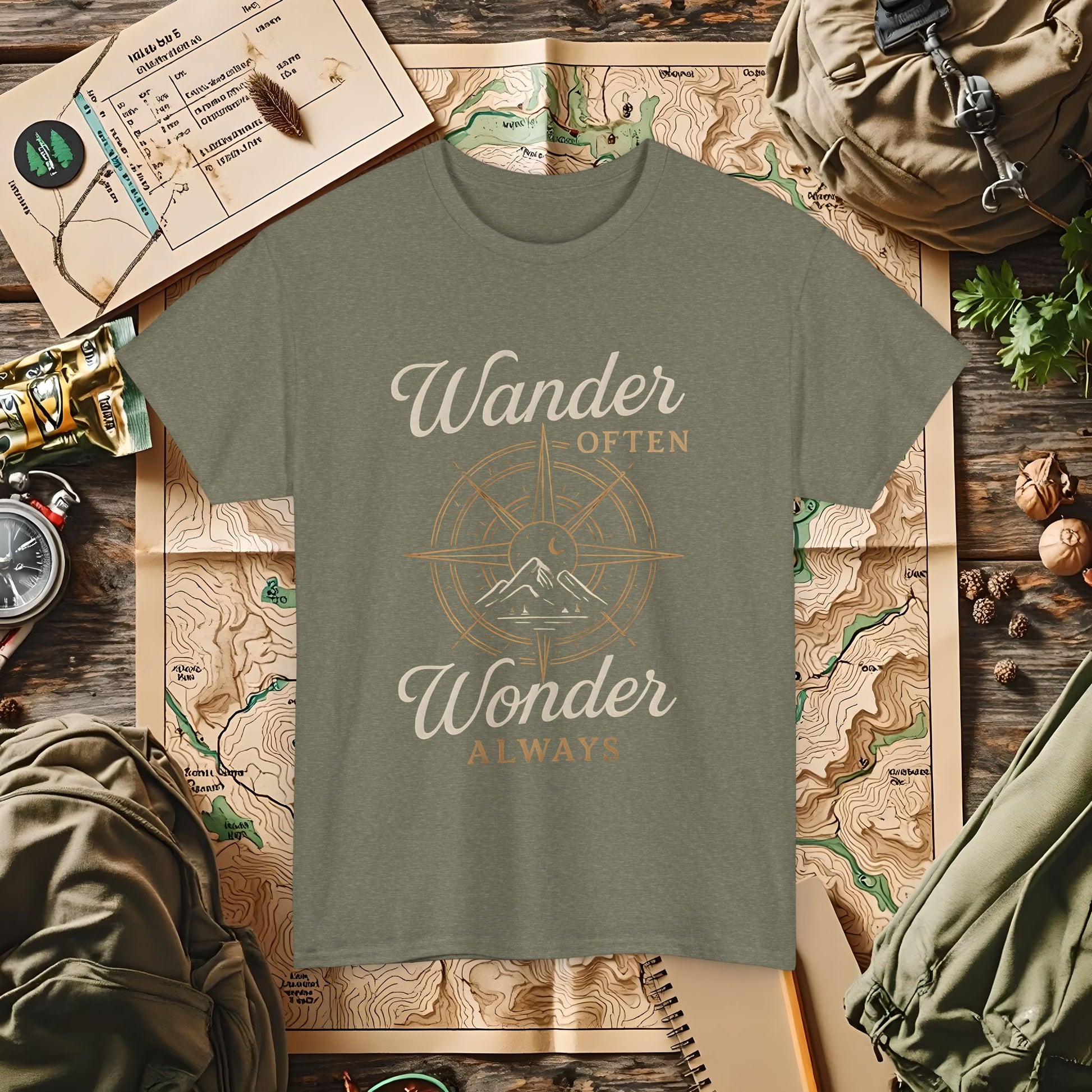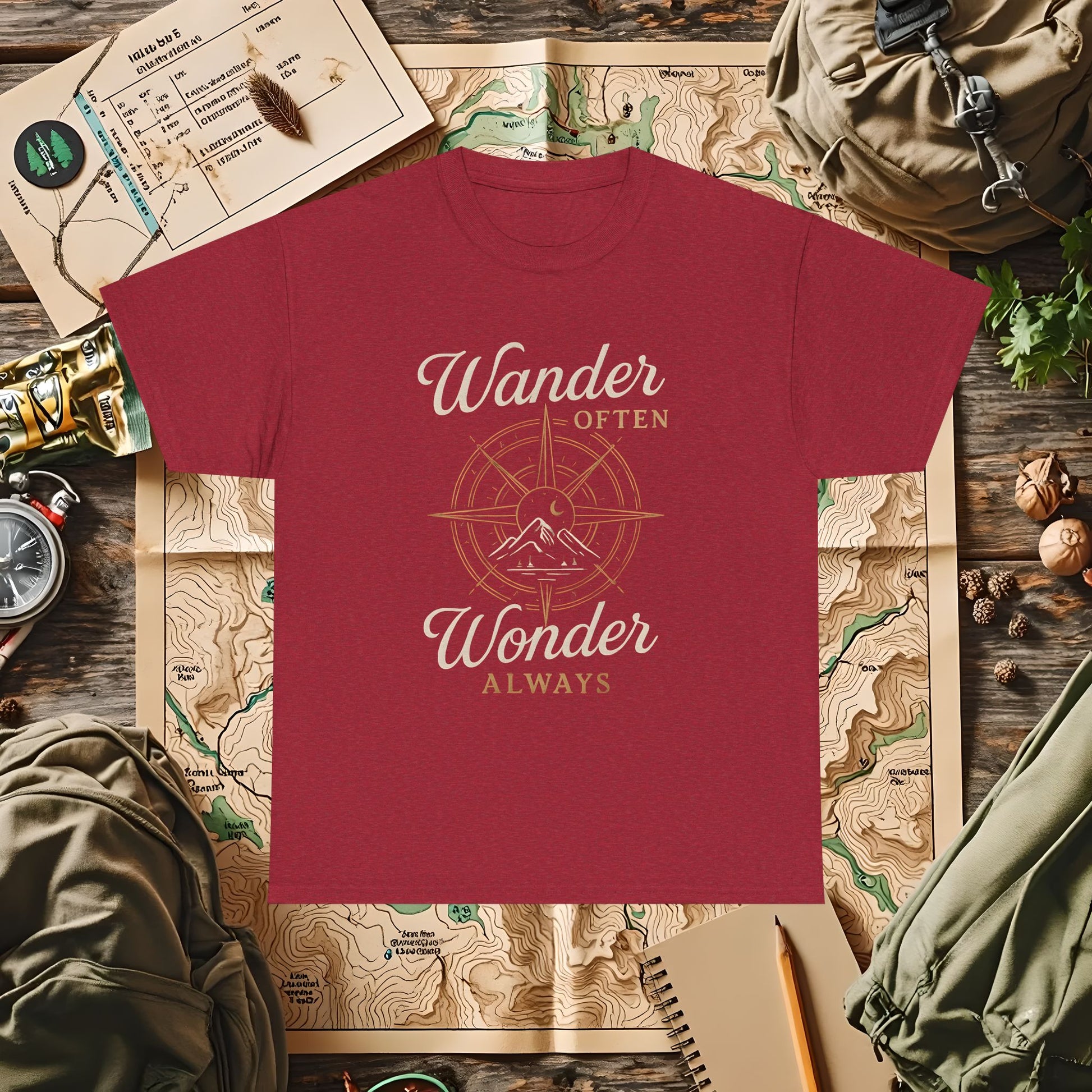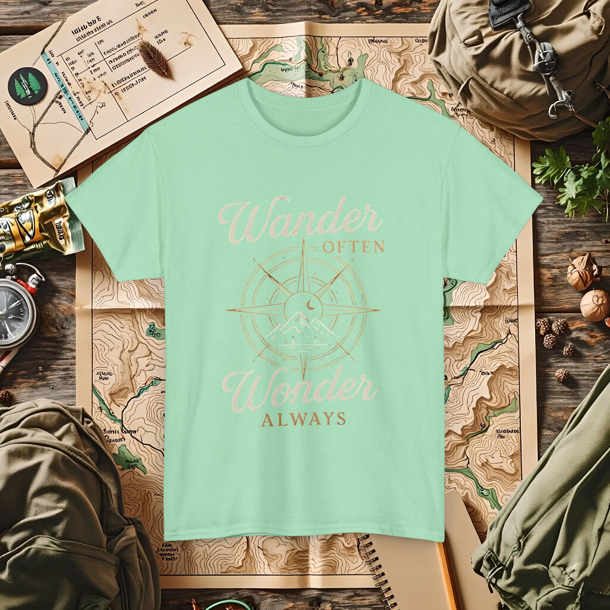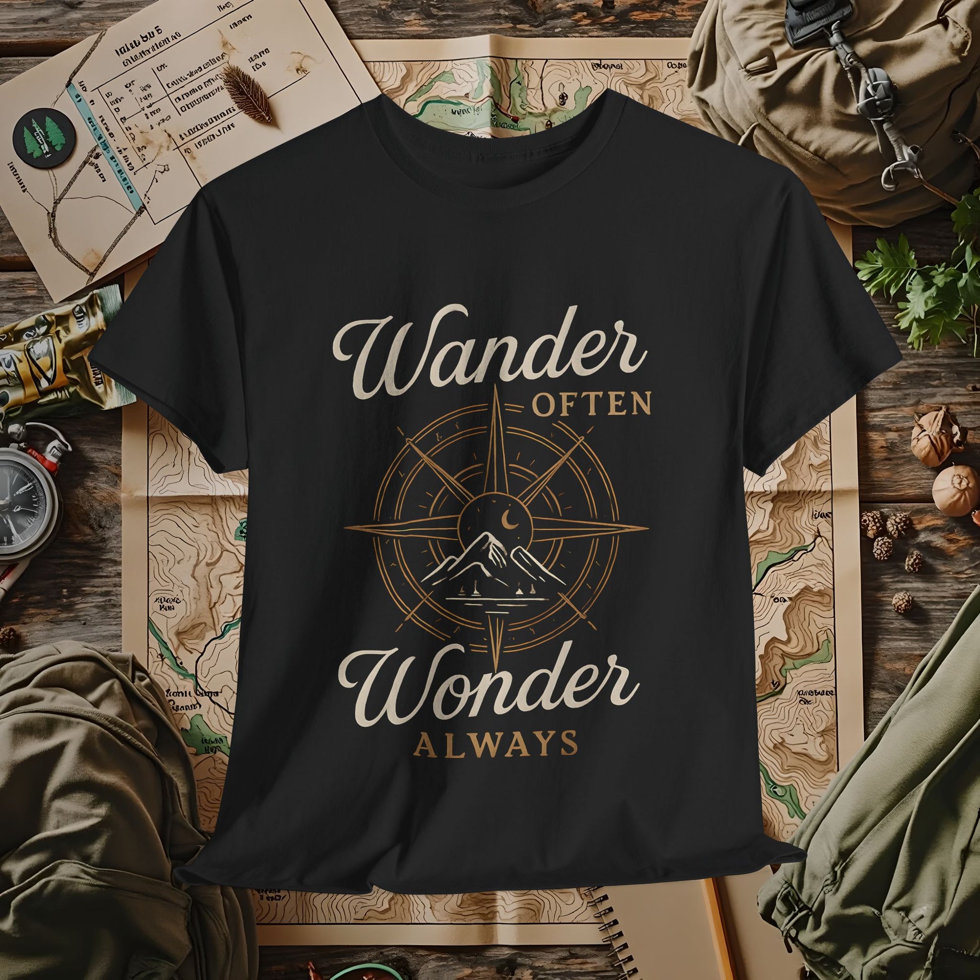 Wander Often, Wonder Always – Compass Quote Travel Tee | Camping, Hiking, Rafting & Kayaking Tees for Nature Lovers